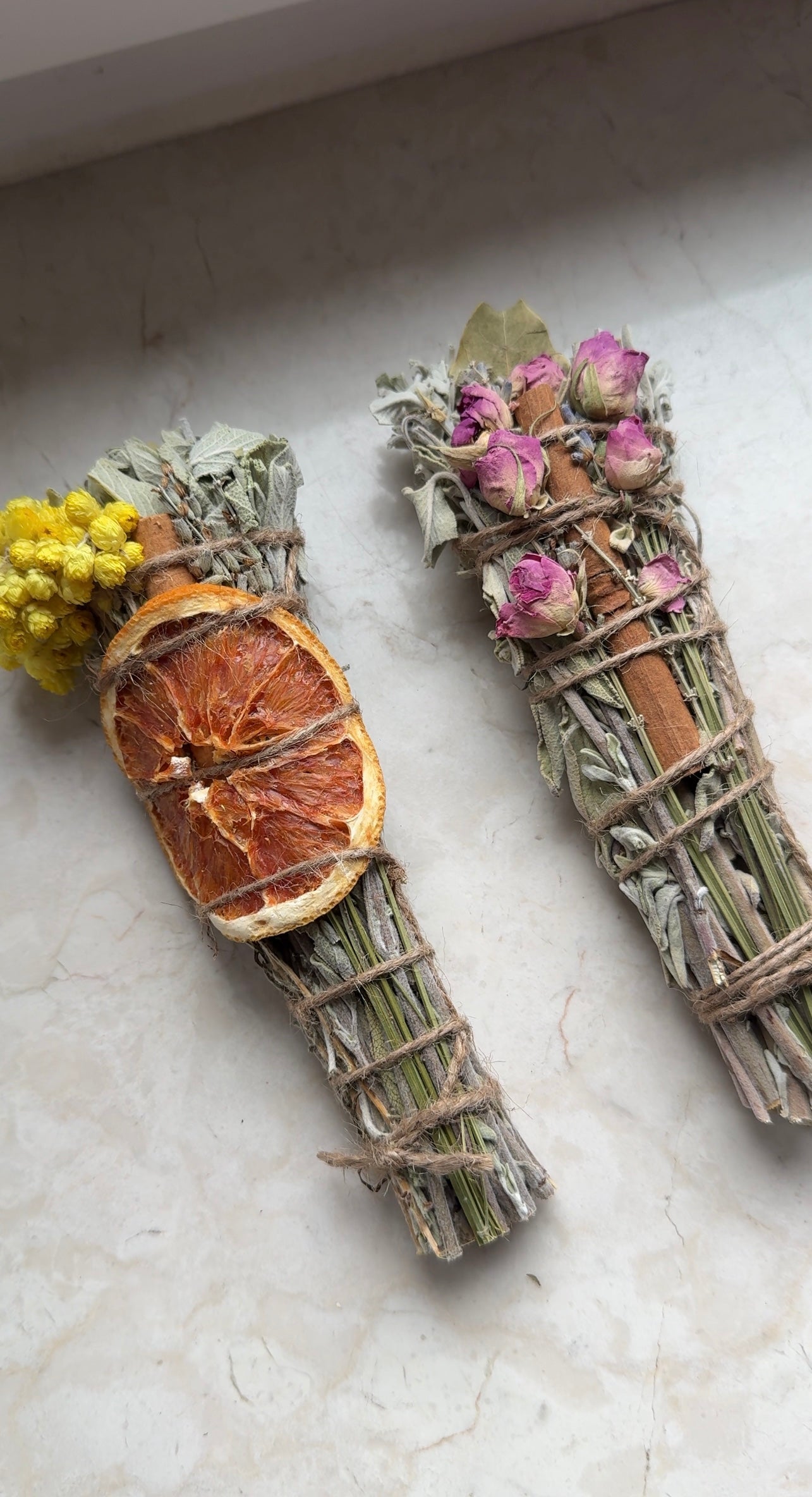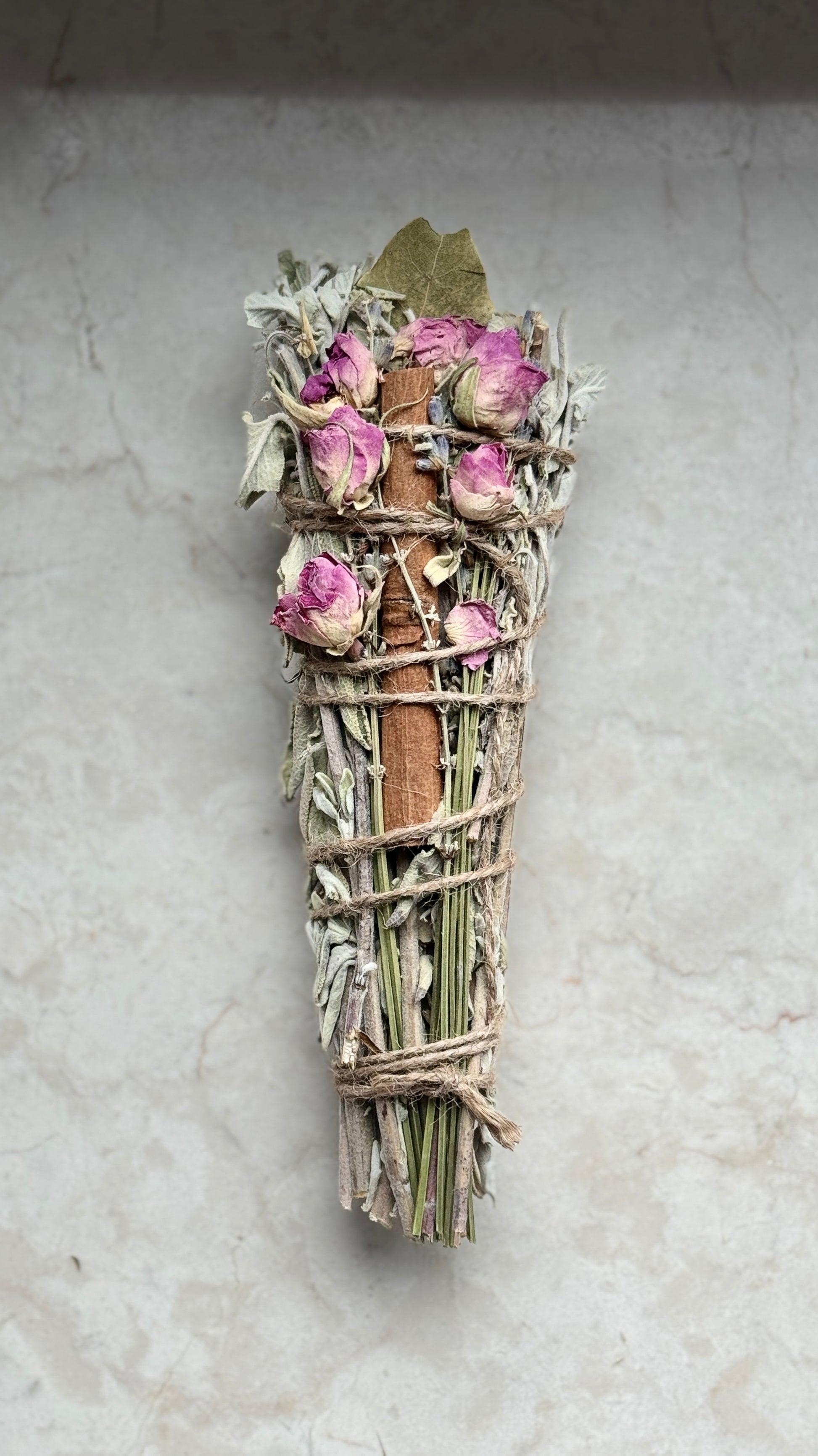 Ein zartes, liebevoll gebundenes Räucherbündel für Herzenergie, Verbindung und emotionale Wärme.